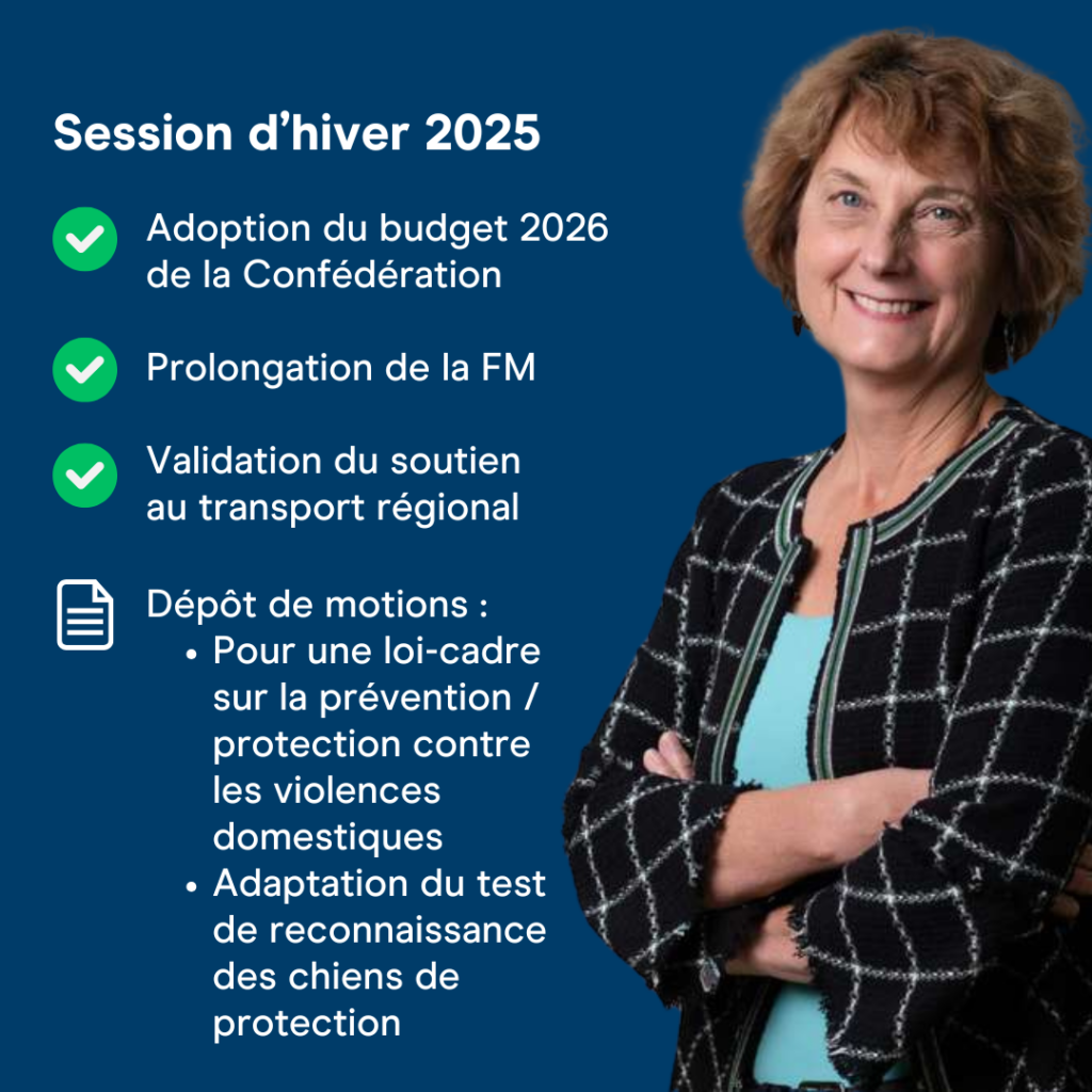 En septembre dernier, le Conseil des États avait accepté d’augmenter de 160 millions le montant du crédit pour le financement du transport régional de voyageurs pour la période 2026–2028, afin de réduire la coupe prévue par le Conseil fédéral. Durant cette session, le Conseil national s’y est opposé. J’ai donc repris la parole pour rappeler que le transport régional de voyageurs constitue le cœur du système suisse de transport public. Il ne doit pas être trop affaibli, une baisse de ces moyens risquant de péjorer en particulier les régions périphériques et/ou les petites localités. Au final, le Parlement a suivi mon argumentation et définitivement acceptée cette rallonge de 160 millions.